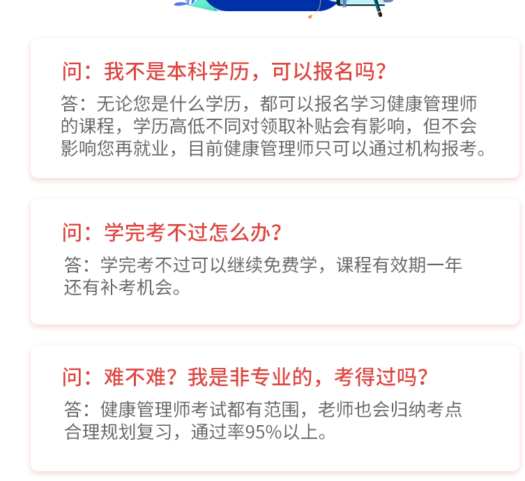| 隨著國家的重視與扶持,健康、醫(yī)療、美容、營養(yǎng)等行業(yè)逐漸成為熱點,健康產(chǎn)業(yè)將為未來十年的大趨勢。而健康管理師是準入從事健康檢測、分析、評估以及健康咨詢、指導(dǎo)等工作的專業(yè)人員的必備,需經(jīng)國家衛(wèi)生行業(yè)健康管理職業(yè)標準培訓(xùn),考取職業(yè)資格證書后才能上崗就業(yè)。我中心特推出健康管理師崗位能力培訓(xùn)課程,專業(yè)課程、強硬師資協(xié)助考證。 |