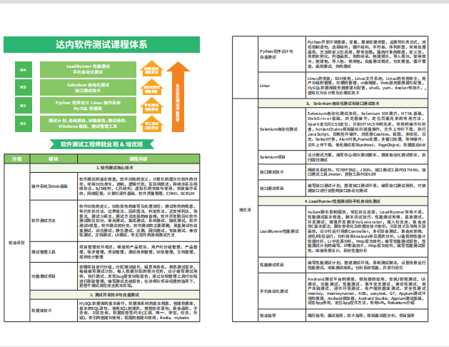 課程簡(jiǎn)介:達(dá)內(nèi)軟件測(cè)試課程包含當(dāng)前火爆的編程語(yǔ)言——python,學(xué)完后可以做人工智能測(cè)試、Python自動(dòng)化測(cè)試、接口測(cè)試等高端測(cè)試。