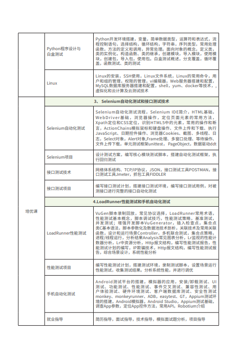課程簡介:達內軟件測試課程包含當前火爆的編程語言——python,學完后可以做人工智能測試、Python自動化測試、接口測試等高端測試。