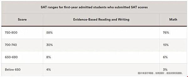 50%的錄取學(xué)生的SAT在1480到1560之間;