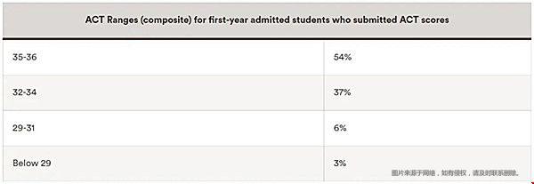 50%的錄取學(xué)生的ACT在33到35之間;