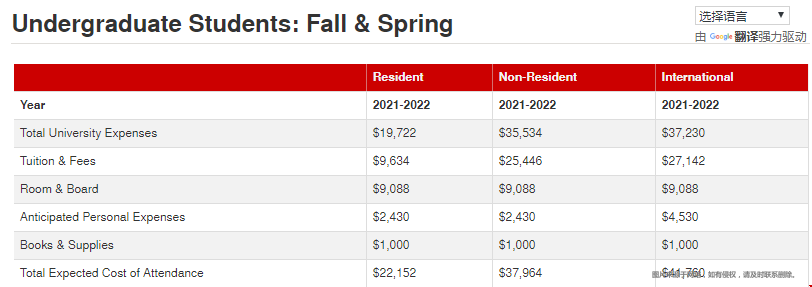 學(xué)費:州內(nèi)居民:11,936美元;州外居民:35,019美元;國際生:37,947美元