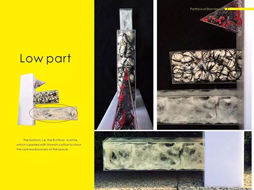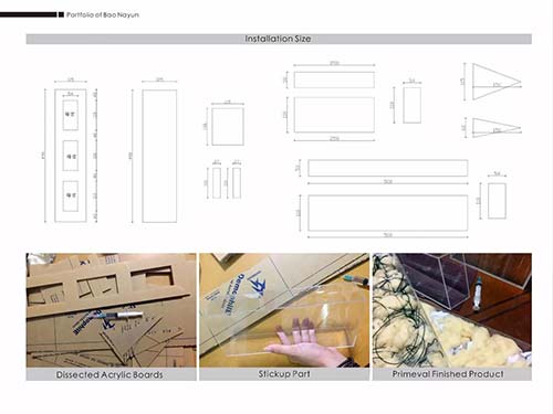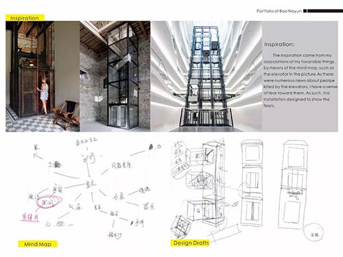 學習過程:學生課時不多,剛來的時候,對室內(nèi)設(shè)計并不是很了解,作品集需要做什么也很懵懂,做了兩個光影方面的裝置,很出彩,在有限的時間內(nèi),做了大量的嘗試。