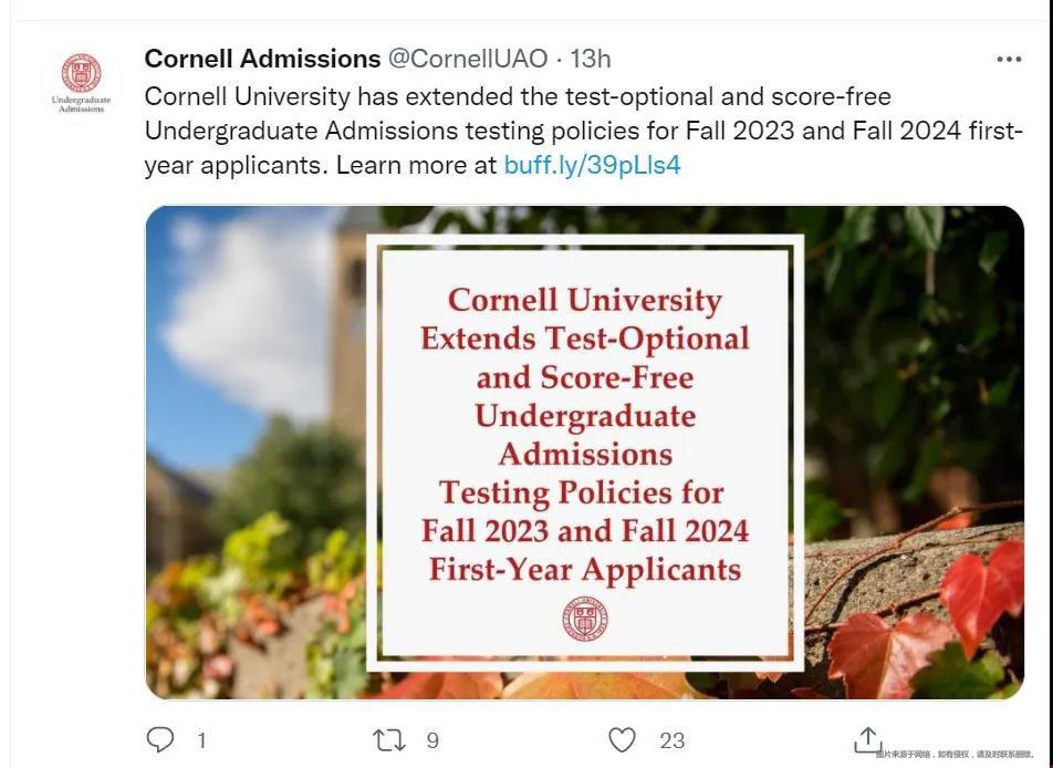 康奈爾大學(xué)SAT/ACT可選政策延期至2024Fall