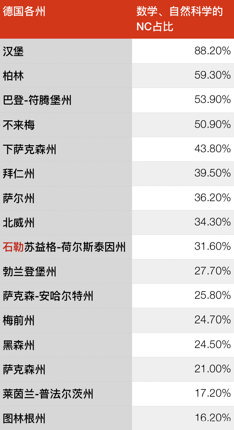 德國(guó)是聯(lián)邦州制,各州都有很大的權(quán)利。對(duì)于NC專業(yè)的占比,各州也是傲嬌的大不相同。