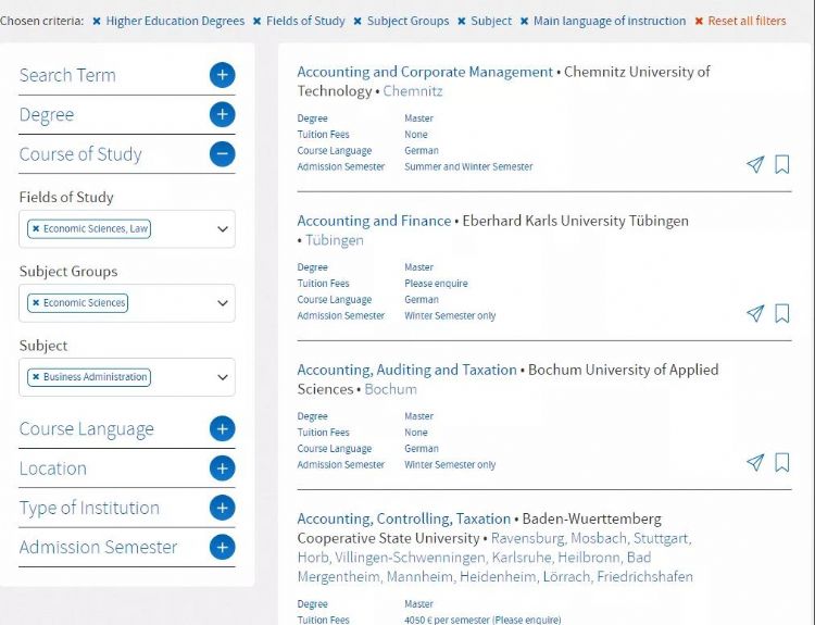 想知道德國哪些大學開設了企業(yè)經(jīng)濟學這門課程嗎?來試試我們超強大的課程檢索數(shù)據(jù)庫——