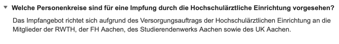 目前 RWTH、FH Aachen、Studierendenwerk Aachen 和 UK Aachen 的教職工和學(xué)生都可以在亞琛工業(yè)大學(xué)校內(nèi)的醫(yī)療機構(gòu)進行疫苗接種。