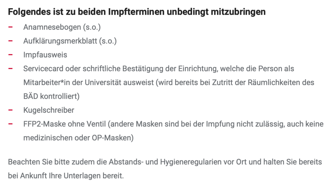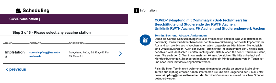 亞琛工業(yè)大學(xué)從 2021 年 6 月 8 日來,學(xué)校內(nèi)的醫(yī)療機構(gòu)一直在提供新冠疫苗接種,學(xué)生和員工能接種到的疫苗種類取決于每周學(xué)校接受的疫苗分配。