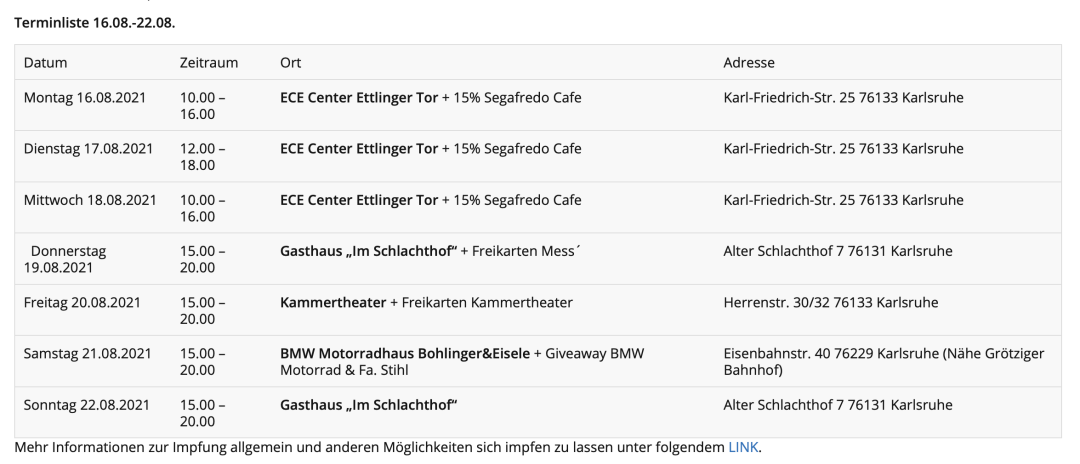 亞琛官網(wǎng)上可以找到預(yù)約接種疫苗的鏈接,最近可以預(yù)約接種疫苗的時間是8月17、18日,19日已經(jīng)被預(yù)約滿。