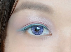第二步,用孔雀藍畫出一道粗粗的眼線,建議在筆刷上沾點點水更好上色。