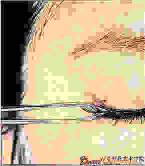用扁平頭眼影刷蘸取深茶色眼影,從上眼角勾勒至眼尾。注意填滿睫毛空隙。