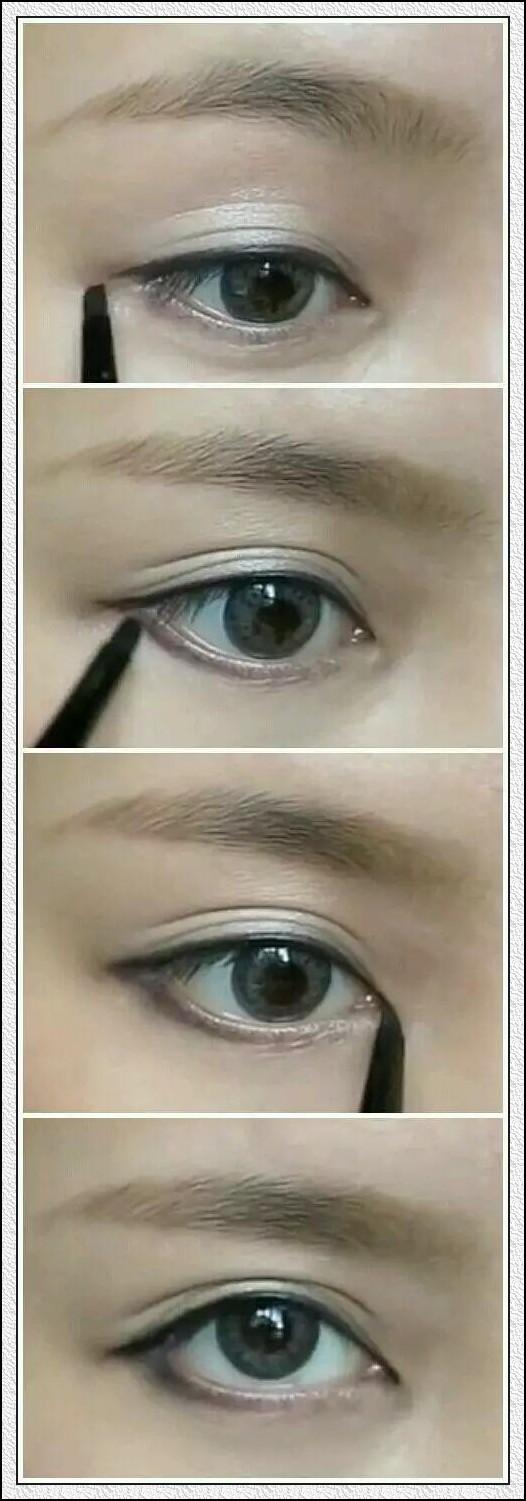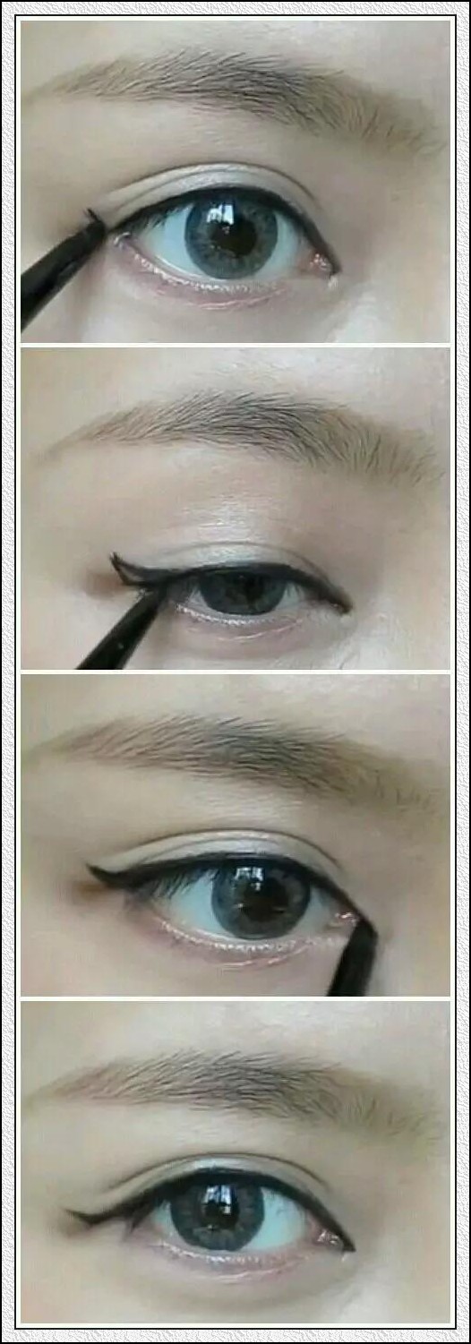 3.眼睛微微瞇起!沿著下眼線的弧線向上延長
