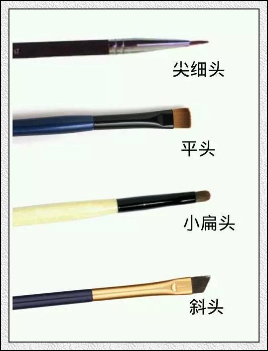 眼線刷刷頭有幾種,一般市面上眼線膏都會(huì)配一個(gè)小扁頭,是最常用而且最容易上手的款型。其他的因應(yīng)個(gè)人喜好選擇。