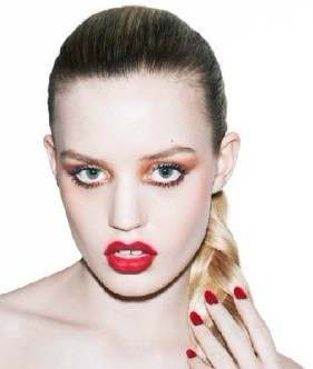 一般與哥特式濃重眼妝相配的,是一張看似蒼白得毫無血色的唇。唇妝可以有少女的飽滿,卻不能嬌艷欲滴,但是卻使用了艷麗的復(fù)古紅唇妝。反而讓五官變得更加清晰,“吸血鬼”般的魅惑氣質(zhì)讓人印象深刻。