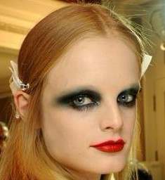 化妝學(xué)校導(dǎo)語: 一出《暮光之城》受到眾多FANS的追捧,不僅捧紅了劇中的男女主角,更掀起了T臺風(fēng)勁吹“吸血鬼”妝容的風(fēng)潮。用同一色調(diào)的、稍 明亮的散粉完成整個妝容,打造一種空靈感。眼影使用有光澤的灰色系,用黑色大范圍的眼影襯托出眼眶,或用灰色眼影帶出頹廢的眼神。唇 妝要么涂成血紅的大嘴,要么用粉底完全遮蓋唇的紅色,制造出蒼白的效果。發(fā)型建議凌亂一點(diǎn),可以加一些驚悚的配飾。