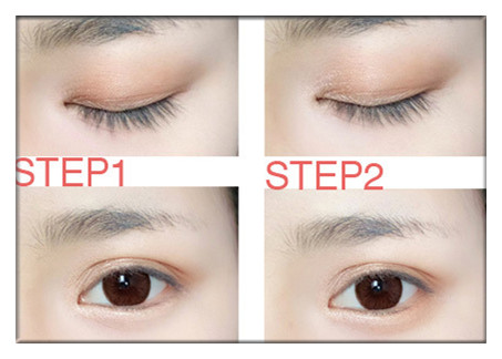 Step1 用淺棕色眼影平涂在眼皮上