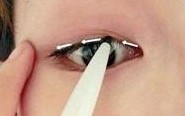 步驟2:用手將上眼皮輕輕的提起來(lái),然后用黑色眼線(xiàn)筆沿著睫毛根部畫(huà)內(nèi)眼線(xiàn),眼尾處可稍微拉長(zhǎng),根據(jù)眼型的水平線(xiàn)平拉下來(lái)。