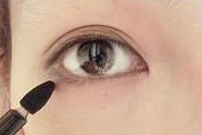 步驟3:用黑色眼線(xiàn)筆畫(huà)在下睫毛下面一點(diǎn),再用深棕色眼影在剛畫(huà)好的眼尾延伸暈染開(kāi)。