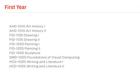 除此之外,在visual computing課上,老師除了會(huì)教PS, AI, ID之類的常用設(shè)計(jì)軟件,也會(huì)帶著學(xué)生制作并經(jīng)營自己的個(gè)人作品集網(wǎng)站。在美國,藝術(shù)家的個(gè)人網(wǎng)站就相當(dāng)于是他們的簡歷,比起插畫作品的紙質(zhì)印刷品和模板單一的個(gè)人簡歷,一個(gè)有自己風(fēng)格的個(gè)人網(wǎng)站,這樣比只通過Instagram,Twitter,F(xiàn)acebook等社交軟件來讓大眾和未來客戶了解自己顯得更專業(yè)、更商業(yè)化一些。這樣的方式不僅能在大一開始的時(shí)候,就能幫同學(xué)們有一個(gè)很好的作品歸納的習(xí)慣,也為今后就業(yè)的個(gè)人宣傳打好了基礎(chǔ)。有的老師還會(huì)在visual computing課上教學(xué)生們一些基礎(chǔ)的攝影知識(shí),這樣在今后如果學(xué)生需要自己拍攝一些參考照片,就能運(yùn)用到在這節(jié)課上所學(xué)到的知識(shí)。
