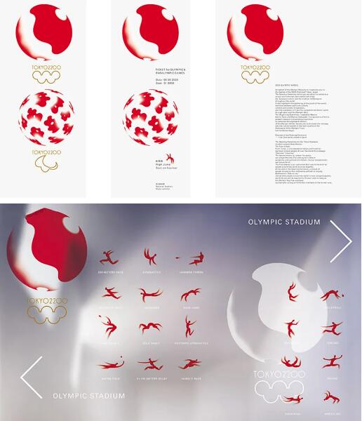 原研哉的設(shè)計(jì)象征著“我們的地球正在大踏步前進(jìn)“和”一顆跳動(dòng)的心臟“以及”頂峰“。這兩個(gè)行星標(biāo)志借鑒了宇宙、太陽、月球以及競技場的含義,在這個(gè)競技場上人類可以超越一切爭斗,共同參與一場比賽盛宴。