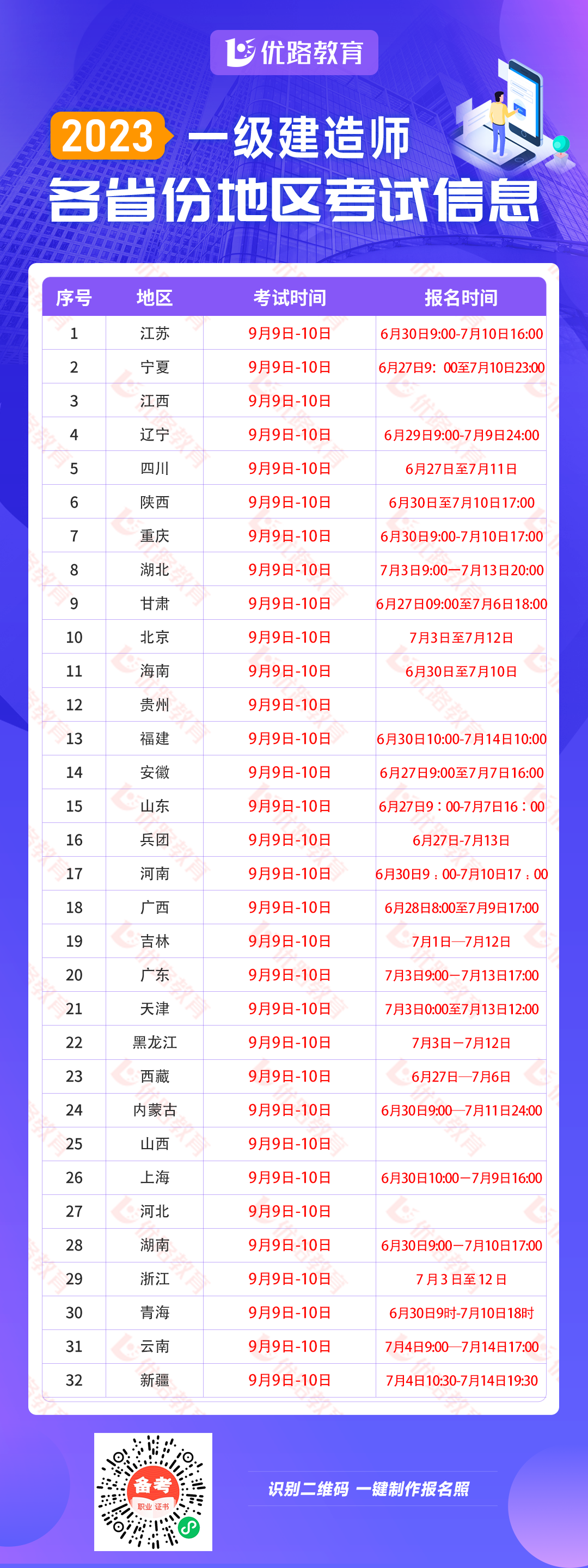 【優(yōu)路教育】2023一級(jí)建造師各省份地區(qū)考試信息表