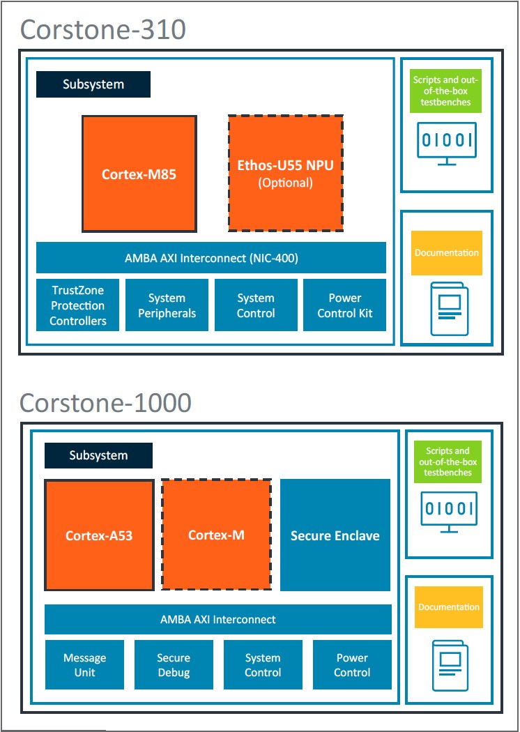 隨著這些現(xiàn)在成為AVH環(huán)境的一部分,還發(fā)布了兩個(gè)新的Corstone IP子系統(tǒng)。與Corstone-300類(lèi)似,Corstone-310將Cortex-M55 CPU內(nèi)核替換為新的-M85內(nèi)核,同時(shí)仍然支持可選的Ethos-U55 NPU。這使得它成為智能揚(yáng)聲器、智能恒溫器和無(wú)人機(jī)等語(yǔ)音識(shí)別設(shè)計(jì)的良好起點(diǎn)。