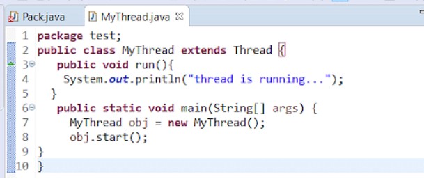 這里,start()用于創(chuàng)建新線程并使其可運(yùn)行。新線程在void run()方法內(nèi)開(kāi)始。