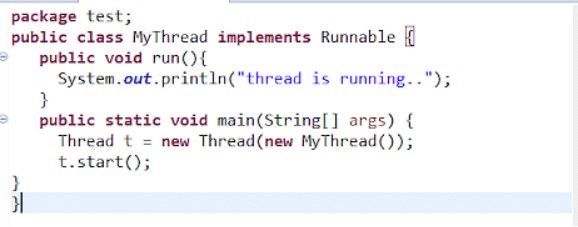 這是在兩者之間創(chuàng)建線程的簡(jiǎn)單方法。在這種情況下,創(chuàng)建一個(gè)類來(lái)實(shí)現(xiàn)Runnable接口,然后實(shí)現(xiàn)run()方法。