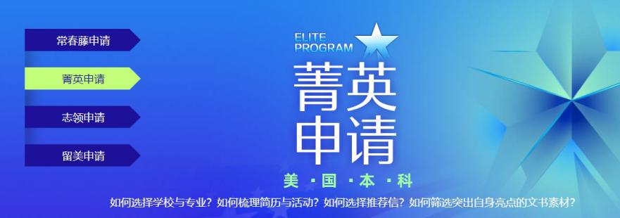 | 美國本科菁英申請(qǐng)是新東方前途出國美國本科條線全新升級(jí)的全程申請(qǐng)項(xiàng)目。經(jīng)驗(yàn)豐富的美本申請(qǐng)顧問將為學(xué)生量身定制個(gè)性化申請(qǐng)方案以培養(yǎng)個(gè)人競爭力,助力申請(qǐng)者逐夢美國TOP 50院校。 |