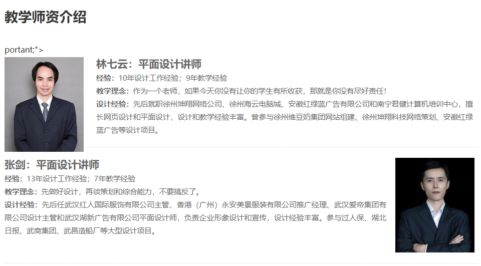 貴陽天琥教育經(jīng)過“面試、項(xiàng)目測(cè)試、復(fù)試、試講、教研培訓(xùn)”五大步驟嚴(yán)格選拔設(shè)計(jì)講師,每位講師都擁有豐富的項(xiàng)目經(jīng)驗(yàn)。進(jìn)入天琥的他們大多是來自4A廣告公司的設(shè)計(jì)精英、設(shè)計(jì)總監(jiān)、藝術(shù)教授。他們憑借自身強(qiáng)大的項(xiàng)目經(jīng)驗(yàn),面對(duì)面教授學(xué)員,讓學(xué)員掌握項(xiàng)目精髓。