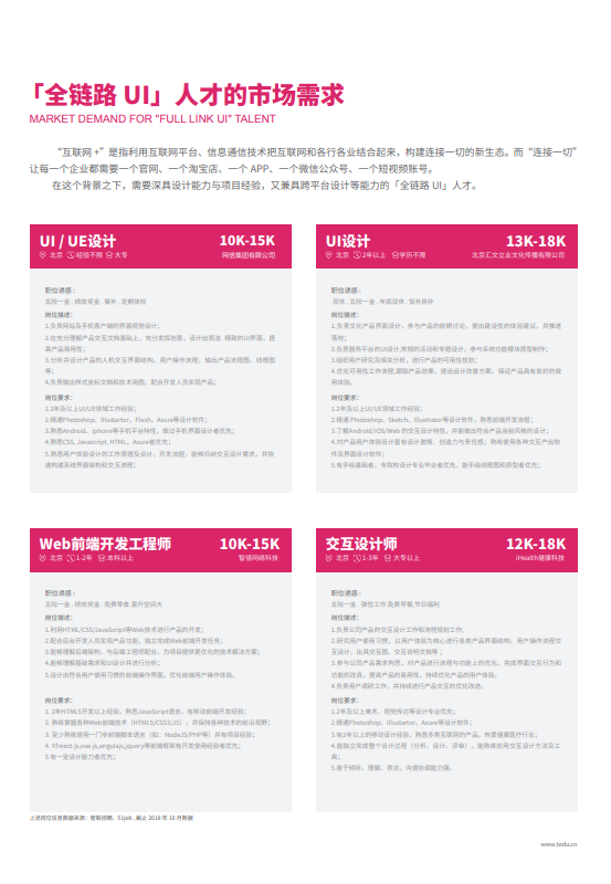 課程簡(jiǎn)介:達(dá)內(nèi)教育集團(tuán)在2012年推出UID課程,培養(yǎng)了兼具平面設(shè)計(jì)、網(wǎng)頁(yè)界面設(shè)計(jì)、Web前端設(shè)計(jì)、智能設(shè)備界面設(shè)計(jì)的全鏈路UI設(shè)計(jì)師。