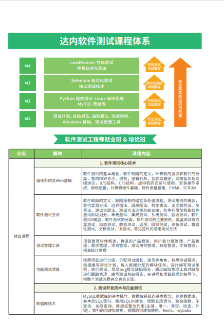 適合學(xué)員:技術(shù)進(jìn)階、應(yīng)屆畢業(yè)生、在職轉(zhuǎn)行 使用教材:線下授課 授課時(shí)間:周末業(yè)余班、全日制脫產(chǎn)班 授課班型:就業(yè)班、進(jìn)階班 課程簡(jiǎn)介:達(dá)內(nèi)軟件測(cè)試課程包含當(dāng)前火爆的編程語言——python,學(xué)完后可以做人工智能測(cè)試、Python自動(dòng)化測(cè)試、接口測(cè)試等高端測(cè)試。 課程特色: 1.免費(fèi)重修 2.7天免費(fèi)試學(xué) 3.簽署就業(yè)協(xié)議,符合條件可退還學(xué)費(fèi) 4.精細(xì)化的分級(jí)教學(xué) 5.顛覆式名企真實(shí)項(xiàng)目驅(qū)動(dòng) 6.擁抱ABC,緊跟時(shí)代技術(shù)潮流