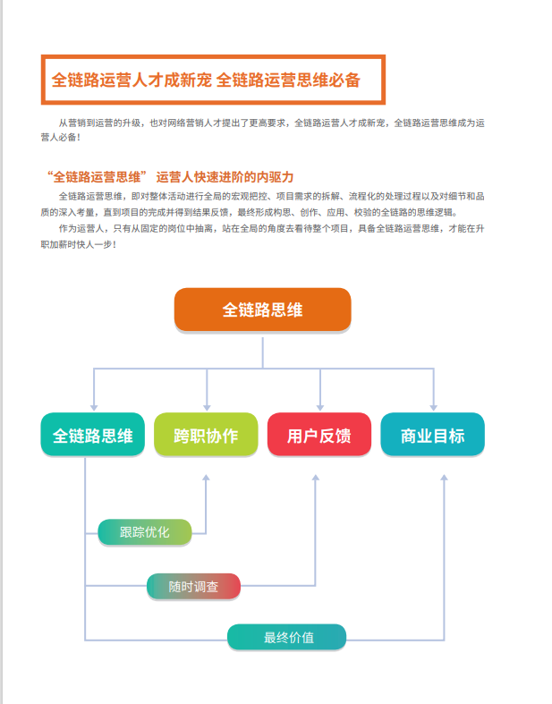 適合學(xué)員:應(yīng)屆畢業(yè)生、在職轉(zhuǎn)行、在職提升 使用教材:線下授課 授課時(shí)間:周末業(yè)余班、全日制脫產(chǎn)班 課程簡介:達(dá)內(nèi)順應(yīng)市場發(fā)展趨勢,快速應(yīng)變,及時(shí)升級互聯(lián)網(wǎng)營銷課程,在SEO、SEM、新媒體、全網(wǎng)電商及信息流廣告優(yōu)化的基礎(chǔ)上,增加私域流量運(yùn)營、短視頻運(yùn)營及電商直播運(yùn)營等快速崛起的營銷方式,經(jīng)過系統(tǒng)的研發(fā)打磨后,將課程分成體系化的兩大類,即互聯(lián)網(wǎng)運(yùn)營和高級電商運(yùn)營! 課程特色: 1.全程實(shí)戰(zhàn)貫穿 2.真實(shí)項(xiàng)目案例 3.升級課程體系 |