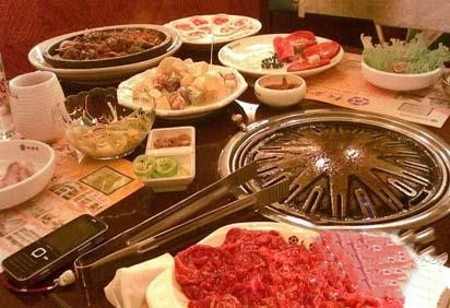 韓國烤肉是韓國料理中的一道大菜。韓國烤肉主要以牛肉為主,如牛里脊、牛排、牛舌、牛腰等。還有海鮮、生魚片等都是韓國燒烤的美味,但是尤以烤牛里脊和烤牛排有名,因?yàn)槠淙赓|(zhì)鮮美爽嫩。韓國烤肉吃法有別于中國烤肉和巴西烤肉,其吃法很特別,吃烤肉的時(shí)候要包著生菜葉或蘇子葉吃。通常是在手里攤開生菜葉,也可以重疊地鋪上蘇子葉,夾一塊兒烤肉,抹一點(diǎn)兒韓國的辣醬,也可以隨意地放上泡菜和米飯,后收攏菜葉,裹成一團(tuán)即可食用,生菜葉或蘇子葉的清爽、烤肉和著辣醬等作料的濃香,使人們享受美食帶來的快感。