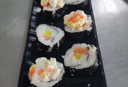 1:原料篩選 系統(tǒng)了解壽司原料的篩選,采購(gòu),存儲(chǔ)方法和技巧.這里重點(diǎn)需要掌握新鮮壽司原料的篩選,以及存儲(chǔ)知識(shí). 2:壽司米制作 系統(tǒng)學(xué)習(xí)壽司米的制作方法.這里重點(diǎn)需要掌握壽司米蒸制時(shí)間,火候,壽司米拌制方法,調(diào)味方法等知識(shí). 3:壽司醋制作 系統(tǒng)學(xué)習(xí)如何制作壽司醋.這里重點(diǎn)需要掌握壽司醋配方,壽司醋的調(diào)制方法等知識(shí). 4:壽司醬油的制作 系統(tǒng)學(xué)習(xí)壽司醬油的制作方法.這里重點(diǎn)需要掌握壽司醬油配方,壽司醬油的調(diào)制方法等知識(shí). 5:壽司配料處理 系統(tǒng)學(xué)習(xí)壽司各種配料的準(zhǔn)備方法.這里重點(diǎn)需要掌握壽司配料的初加工以及各種配料的搭配知識(shí). 6:壽司的制作 系統(tǒng)學(xué)習(xí)壽司整體制作步驟.這里重點(diǎn)需要掌握壽司制作的各個(gè)步驟,怎么卷壽司,壽司飯菜的搭配等知識(shí). 7:壽司切割裝盤(pán) |