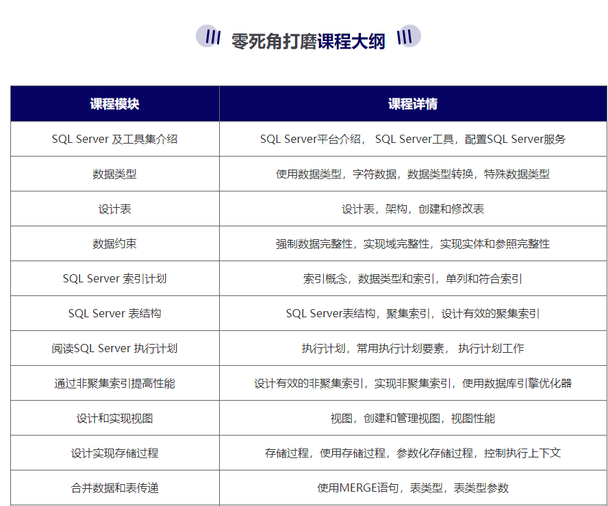 當前位置:賦能網(wǎng)>培訓課程>IT電腦>大數(shù)據(jù)>數(shù)據(jù)庫>深圳高級數(shù)據(jù)庫sql server培訓班課程