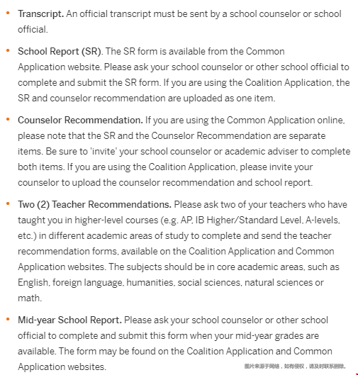 b.學(xué)校報(bào)告(SR):SR 表格可從通用申請(qǐng)網(wǎng)站獲得。請(qǐng)讓您的學(xué)校輔導(dǎo)員或其他學(xué)校官員填寫(xiě)并提交 SR 表格。如果您使用的是 Coalition Application,則 SR 和顧問(wèn)推薦將作為一項(xiàng)上傳。