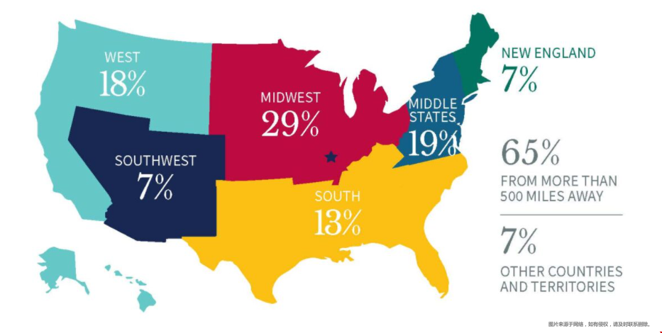 2025屆圣路易斯華盛頓的新生來自于49個州及20多個國家,以及哥倫比亞特區(qū),關(guān)島和波多黎各。