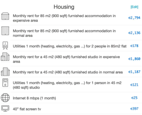 與巴黎生活成本相似的城市
