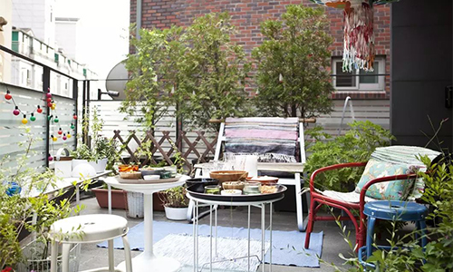 Anton還綜合利用戶外和室內家具,以及地毯和靠墊等布料制品,營造適合社交和放松的舒適空間?!拔蚁M蛟煲粋€舒適的戶外空間,我和朋友可以在里邊共度美好時光,還真做到了――我們最終決定在陽臺上吃燒烤、品美酒,暢玩到深夜?!?/p>