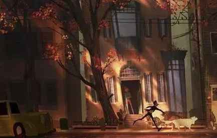 這張圖用逆光剪影的方式塑造了場景,屋子基本都被籠罩在陰影中,人物處在視覺中心(畫面中最亮的色塊也在這),用強烈的明暗對比展示出人物動態(tài),連發(fā)絲細節(jié)也刻畫的很生動。周圍樹枝的剪影起到了邊框裝飾和補充氣氛的作用,實際展現(xiàn)出來的立體的屋內(nèi)細節(jié)反而被籠罩在陰影里,且呈包圍狀環(huán)繞中心人物,產(chǎn)生緊密關(guān)聯(lián)性增加次要敘事性(人物生活地點的環(huán)境)。
