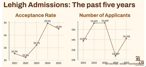 理海大學(xué)2025屆的常規(guī)錄取決定??偣灿?4,106名申請人,錄取率接近45%,六成學(xué)生選擇遞交標化成績,其中在國際申請者中,中國公民的申請減少了25%。