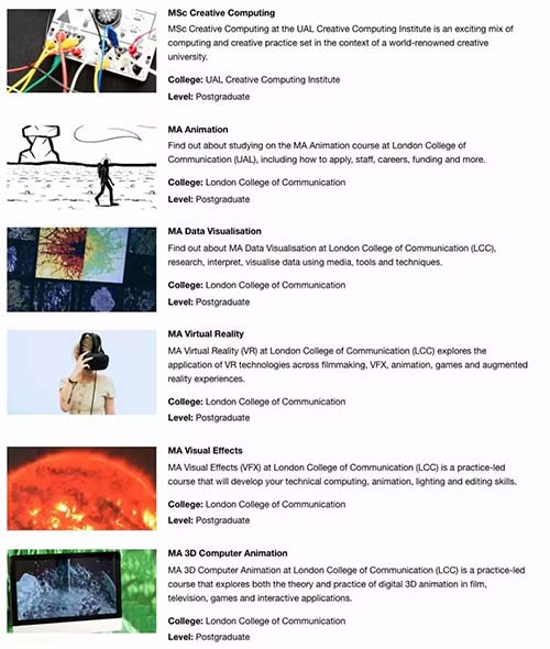 從這次CCI已公布的可申請(qǐng)專業(yè)來(lái)看,被翻譯為UAL創(chuàng)意計(jì)算機(jī)學(xué)院的CCI不僅為在課程上做出了不同于其它六所學(xué)院的全新專業(yè)規(guī)劃,更從創(chuàng)意產(chǎn)出和計(jì)算機(jī)科學(xué)的兩個(gè)方面為學(xué)生提供了多項(xiàng)研究機(jī)會(huì),以及可供實(shí)踐的公共平臺(tái)。