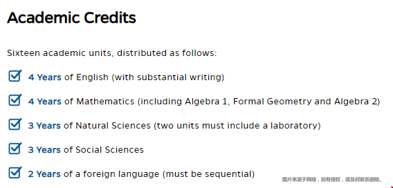 1、學(xué)術(shù)GPA要求:不低于3.0,高中課程成績不低于C,其中雙錄取成績不低于2.0;