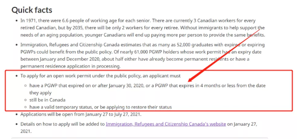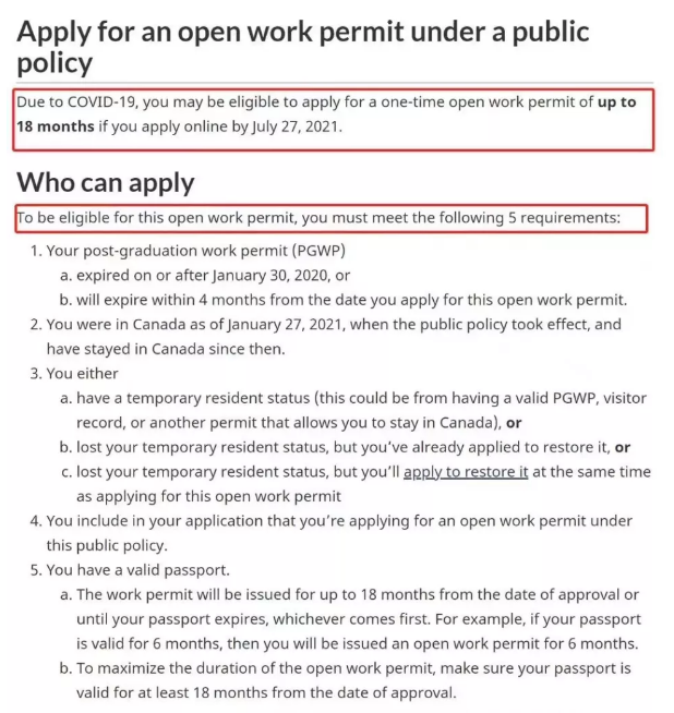 畢業(yè)工簽在2020年1月30日或之后到期,或者,自申請之日起,4個月內(nèi)到期