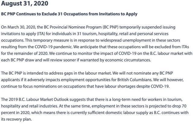 不過,官方表示會繼續(xù)將BCPNP的提名機(jī)會放在疫情出現(xiàn)后,勞動力依然短缺的職業(yè)類別上。