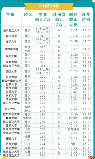 2.學(xué)費(fèi):首爾地區(qū)每學(xué)期學(xué)費(fèi)在9000-10000元人民幣左右。地方大學(xué)每學(xué)期學(xué)費(fèi)在7500-9000元人民幣左右。