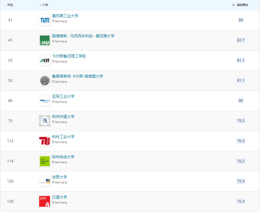 不過嘛,去年疫情不可避免會(huì)帶一些負(fù)面影響,所以今年QS排名,大家就參考好了,權(quán)威還得看接下來即將發(fā)布的德國(guó)本土排名CHE啦~