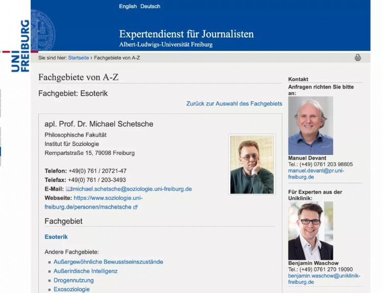 弗萊堡大學(xué)為學(xué)生們開設(shè)了神秘學(xué)(Esoterik)課程,這門課程的確切名稱是“精神和跨文化”。它是宗教間研究所的一部分,被稱為接觸研究。