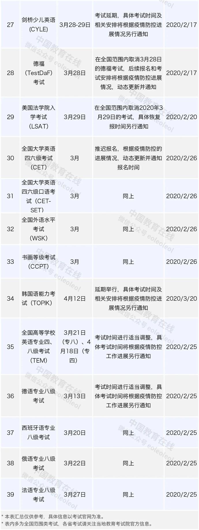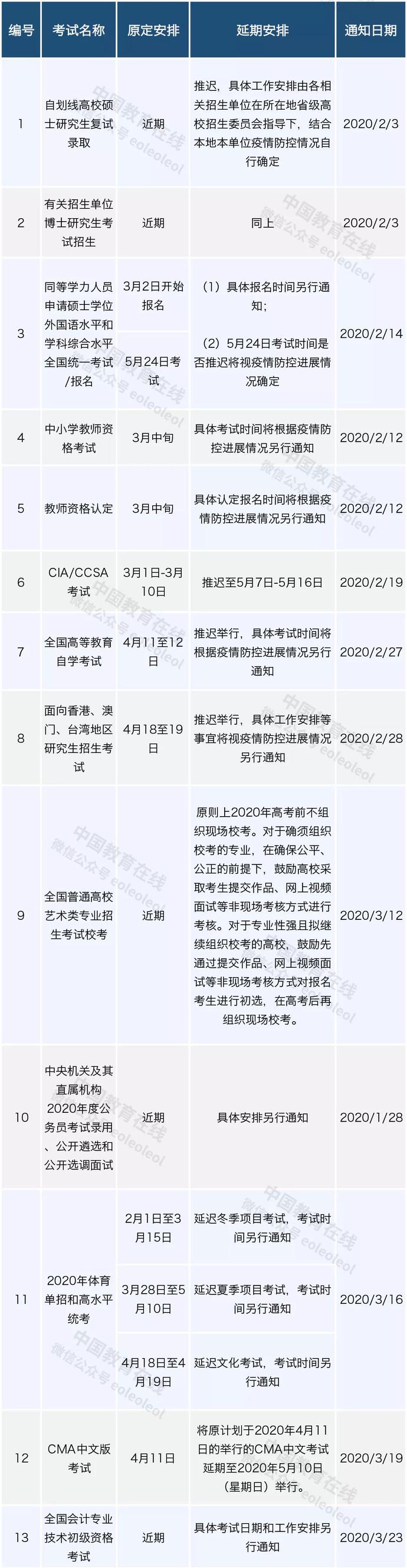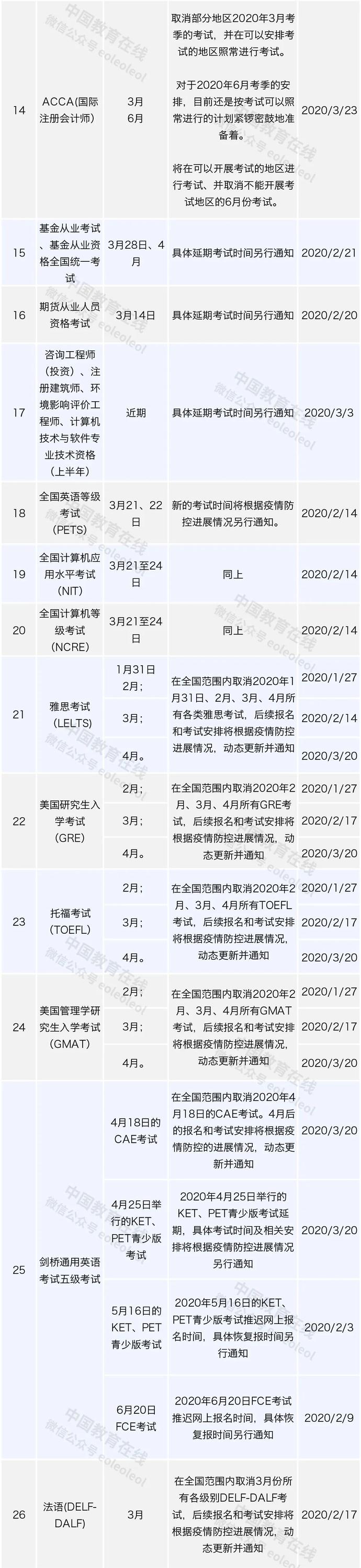 疫情肆虐之下,企業(yè)推遲復(fù)工,學(xué)校開學(xué)時(shí)間一再延期,那么對于大家關(guān)注的各類考試又受何影響?在此為大家進(jìn)行了搜集整理: